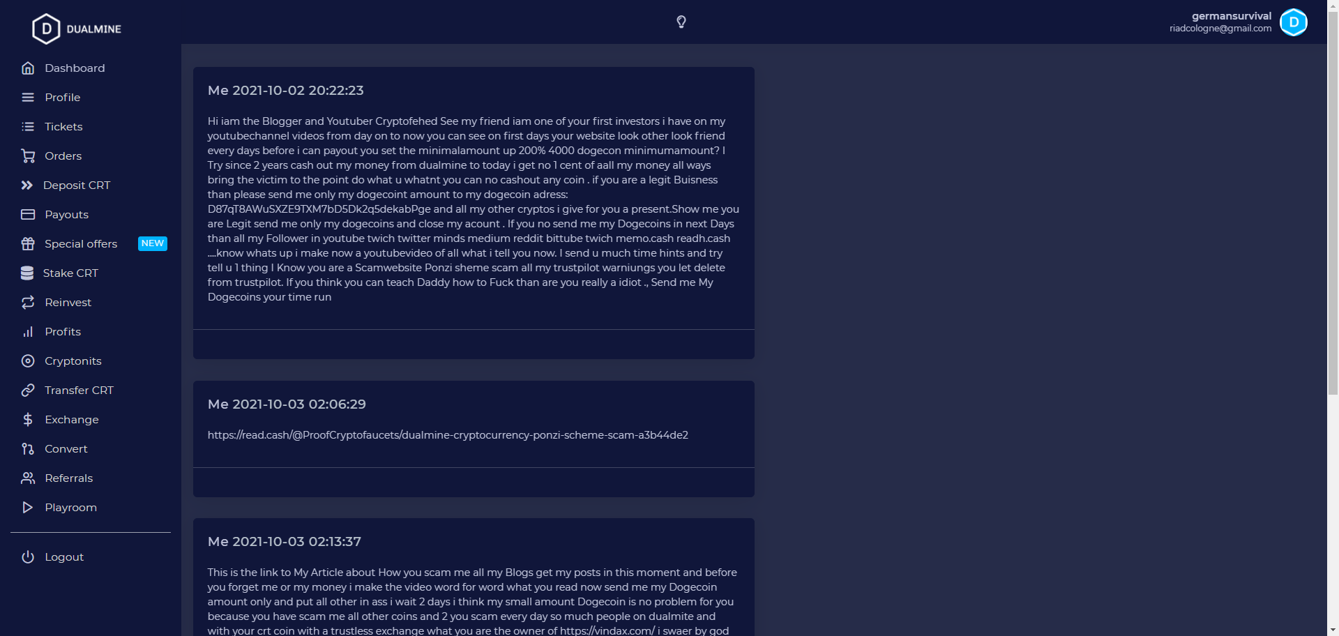 Here my last words to Dualmine Support i tell him i want only my dogecoin amount from him and i give him all other crypto in my acount for him present